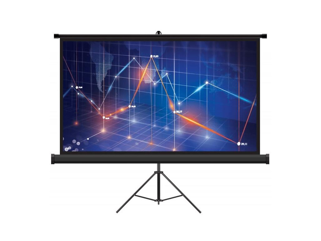 Po rozložení je projekční plátno připraveno k použití. Ocelový stativ poskytuje stabilitu i na méně rovné podlaze. Díky výškovému nastavení ho lze přizpůsobit konkrétnímu prostoru. Po skončení jednoduše složíte celý set a přenesete díky rukojeti na další místo.