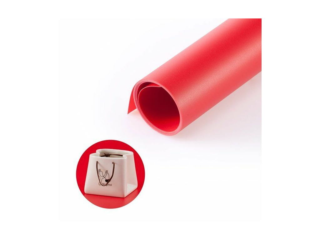 Czerwone tło fotograficzne PVC o wymiarach 1 x 2 metry, używane przede wszystkim do kluczowania tła, fotoportretów lub różnych projektów studyjnych. Dzięki cienkości tworzywa tło jest elastyczne i łatwo dopasowuje się do konstrukcji / stołu, ewentualnie może swobodnie stać w rogu po obciążeniu.