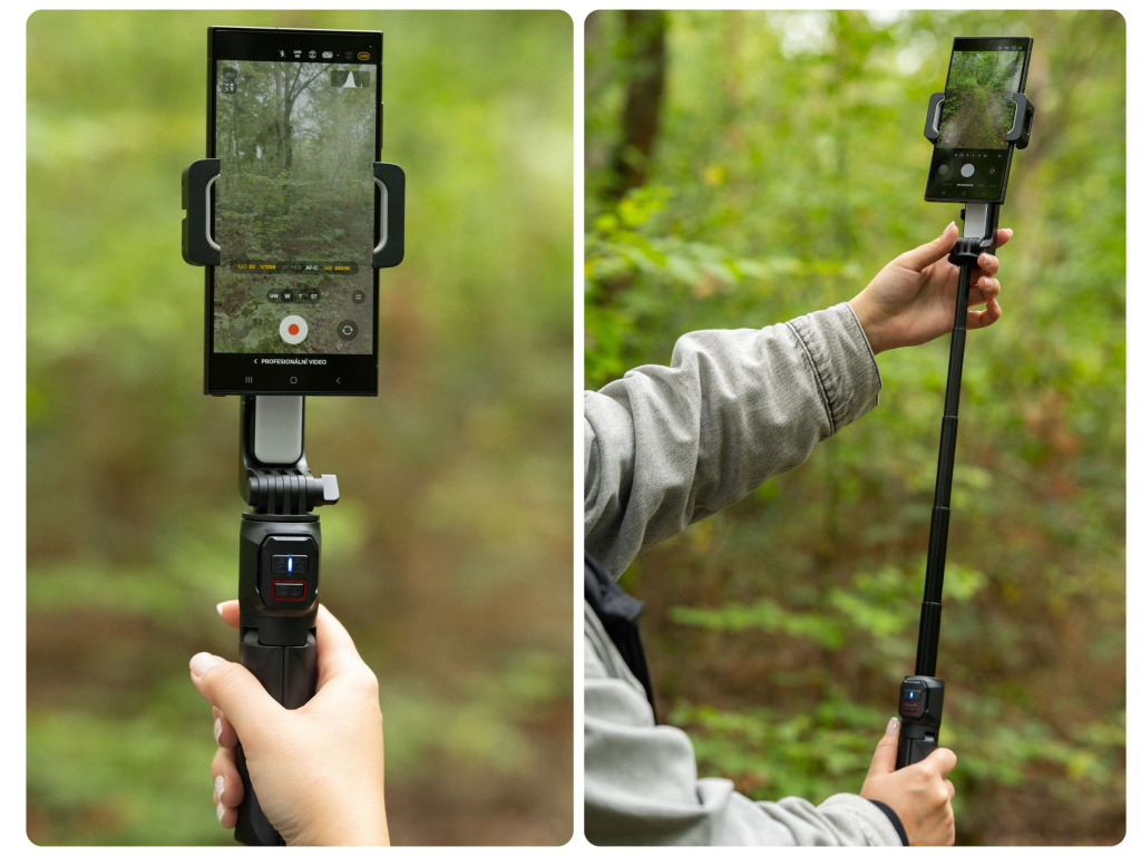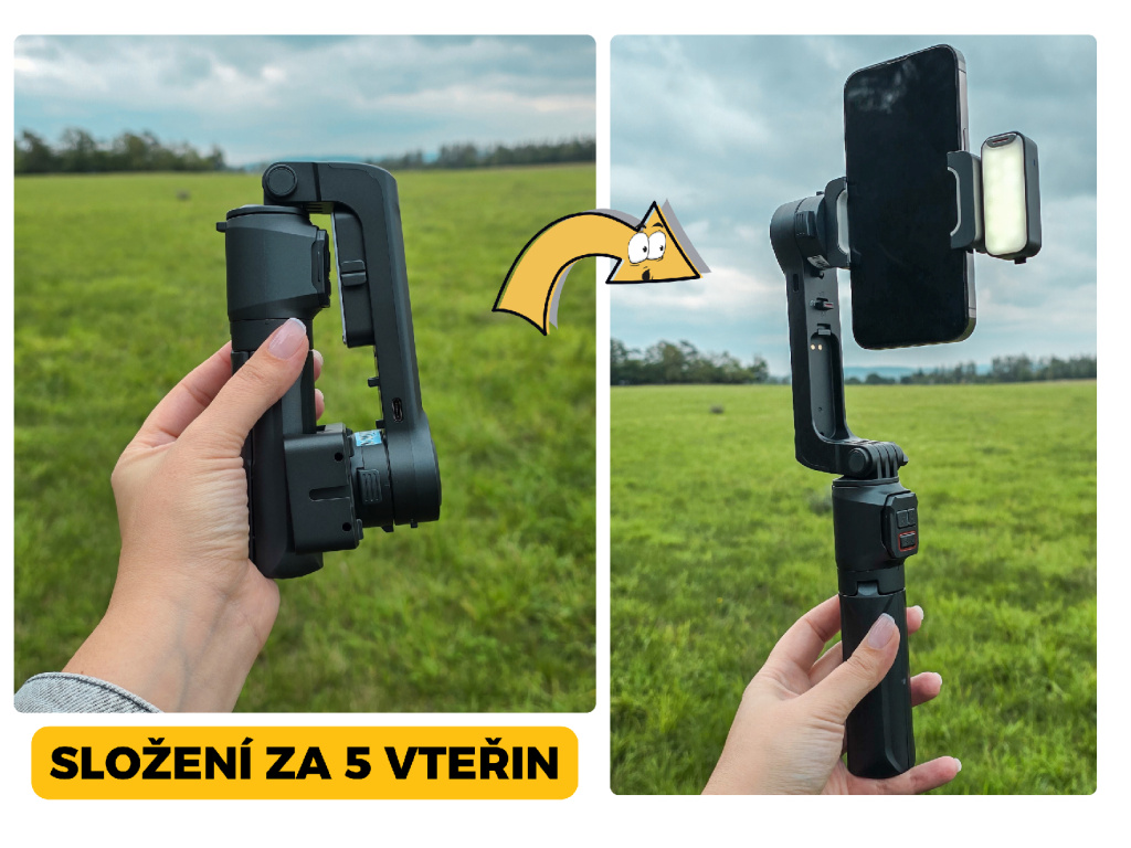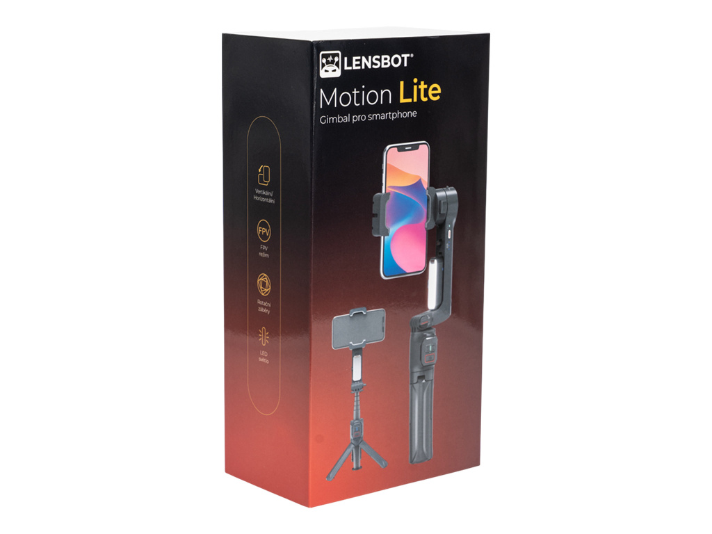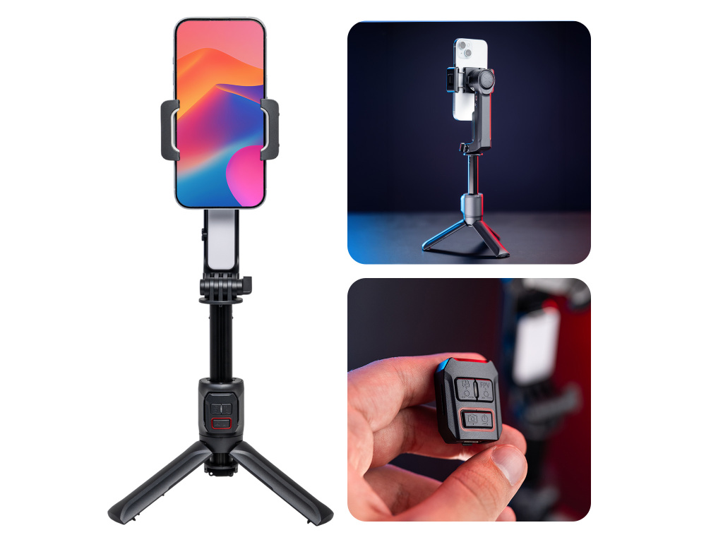 LENSBOT Motion Lite 4w1 - Statyw, gimbal i uchwyt na smartfona ze światłem LED Statyw, gimbal i kijek do selfie w jednym + światło