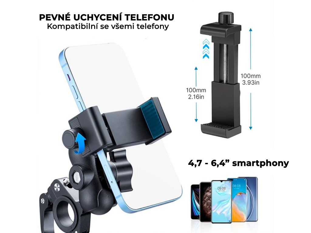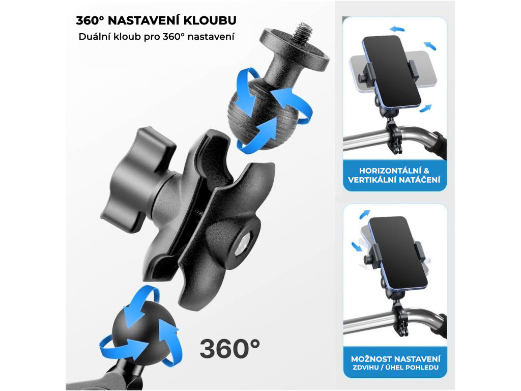 Bardzo mocny aluminiowy zacisk z silikonową powierzchnią antypoślizgową zapewniający absolutnie pewne mocowanie smartfona lub kamery sportowej do roweru. Idealny do używania do nawigacji lub nagrywania z roweru. W zestawie znajduje się również zacisk do smartfona, który pomieści telefon o szerokości do 100 mm. W zestawie znajduje się również adapter GoPro. Kto potrzebuje samego przegubu, ma śrubę 1/4", więc zastosowanie jest naprawdę wielofunkcyjne bez ograniczeń.