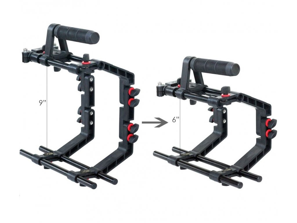 Łuk Filmcity w kształcie litery C umożliwia stworzenie klatki operatorskiej z regulowaną długością od 6" do 9". Łuk jest kompatybilny z prętami 15 mm, więc wystarczą dwie pary prętów, aby mieć w pełni funkcjonalną klatkę operatorską. Ponadto całą konstrukcję można rozbudować o uchwyty, bazę kamery, matte box lub boczne ustawianie ostrości.
