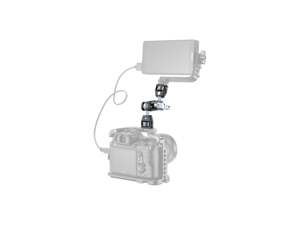 Ramię przegubowe jest wyposażone w śruby 1/4” i 3/8" Arri Locating. Do jednego końca można przymocować klatkę kamery, a do drugiego końca przymocować monitor lub lampę wideo. Przegub jest wyposażony w nakrętkę motylkową do regulacji kątów i położeń monitora, światła wideo lub innych akcesoriów.