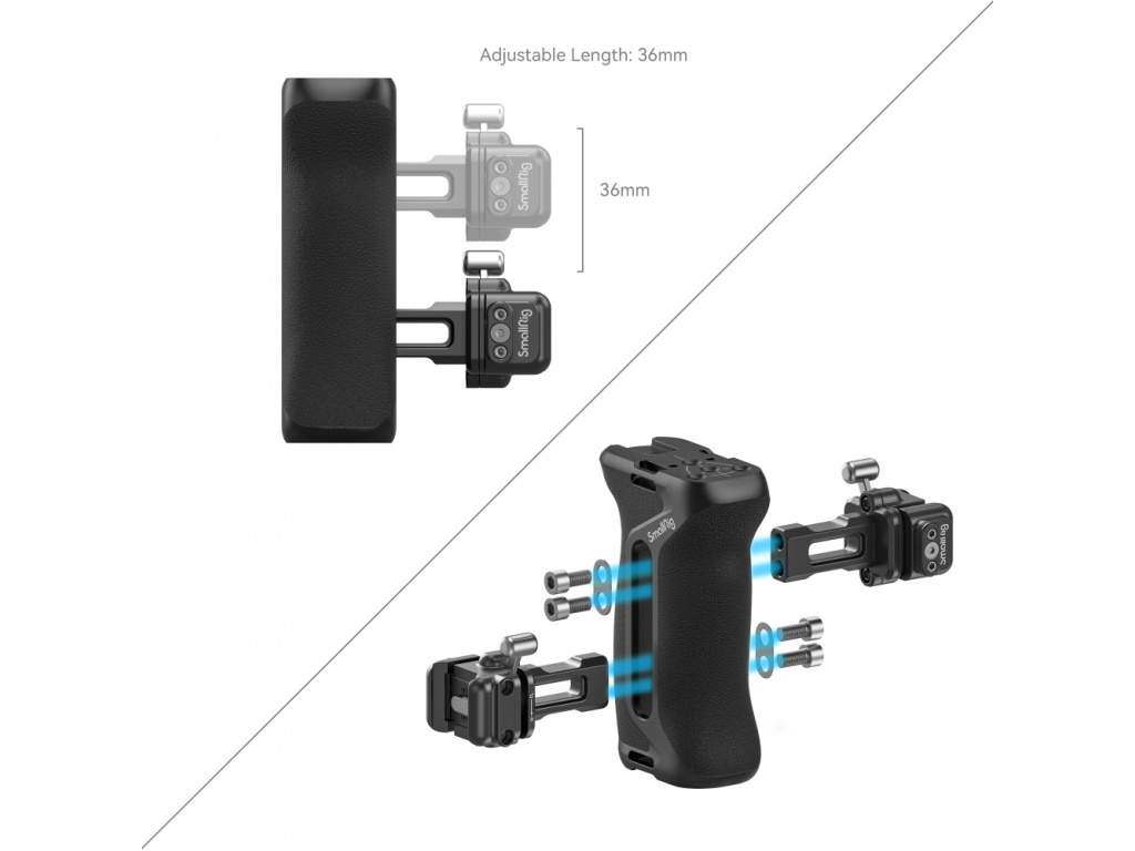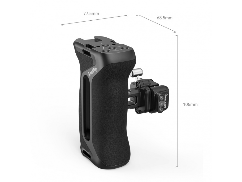Uchwyt boczny SmallRig Snap-on Quick Lock NATO 4017 został zaprojektowany, aby ułatwić ruch kamery i stabilizować ujęcia dla lewej i prawej ręki, zapewniając podstawowe mocowania akcesoriów. Kompatybilny ze standardową szyną NATO, uchwyt zatrzaskuje się lub zwalnia szynę NATO w ciągu jednej sekundy, bez konieczności wcześniejszego usuwania innych akcesoriów, co oszczędza czas fotografowania. Można go dodatkowo dokręcić kluczem. Antypoślizgowy silikon jest wygodny, a dzięki ergonomicznemu kształtowi pasuje zarówno do lewej, jak i prawej dłoni. Element może przesuwać się w górę i w dół o 35 mm, aby zapewnić zrównoważony punkt chwytu i umożliwić pełny dostęp do interfejsów kablowych. W zestawie znajdują się również takie uchwyty na akcesoria, jak gwintowany otwór 1/4 "-20, otwór osiowy 1/4"-20, otwór na pasek, uchwyt typu cold shoe, który obsługuje uchwyt monitora, ramię magiczne z głowicą kulową, lampę wideo LED, mikrofon itp. Dodatkowo w zestawie znajduje się wbudowany magnetyczny klucz imbusowy ułatwiający montaż i demontaż akcesoriów.