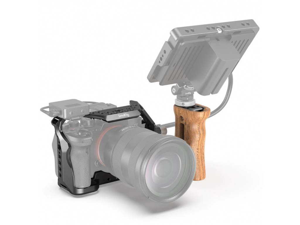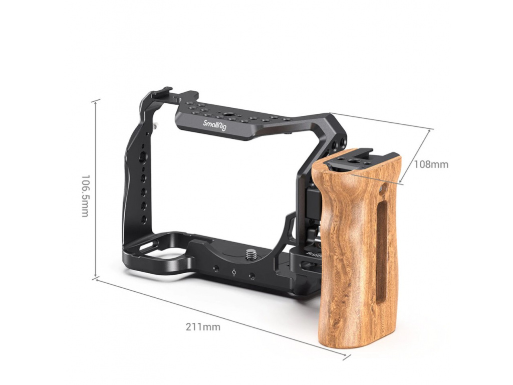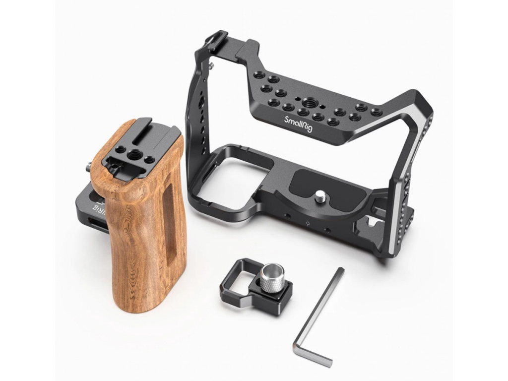 Ten zestaw zawiera aluminiową pełną klatkę, zacisk kablowy HDMI i drewniany uchwyt boczny. Klatka kamery posiada wiele gwintów mocujących 1/4"- 20 i 3/8"-16, szynę NATO, sanki oraz uchwyty na akcesoria w stylu ARRI. Zacisk HDMI mocuje się z boku klatki za pomocą śruby 1/4 "-20 i dwóch kołków zapobiegających skręceniu, co zapobiega przypadkowemu odłączeniu kabla HDMI od aparatu. Gładki drewniany uchwyt można używać po lewej lub prawej stronie, aby zapewnić pewny i wygodny chwyt.