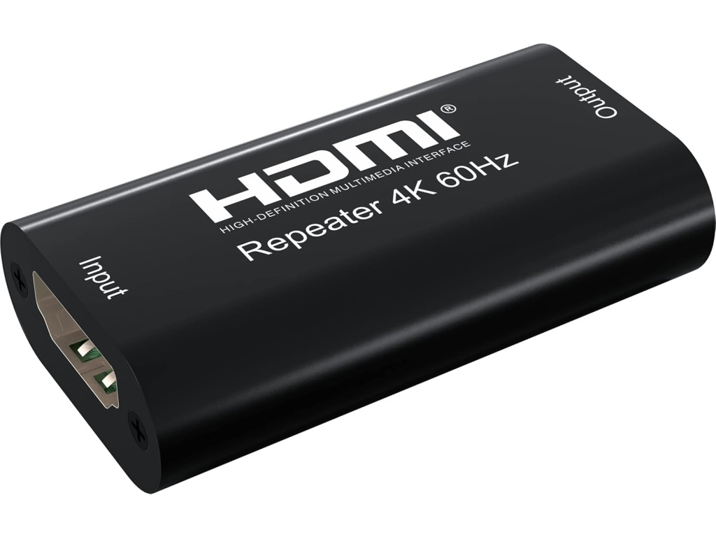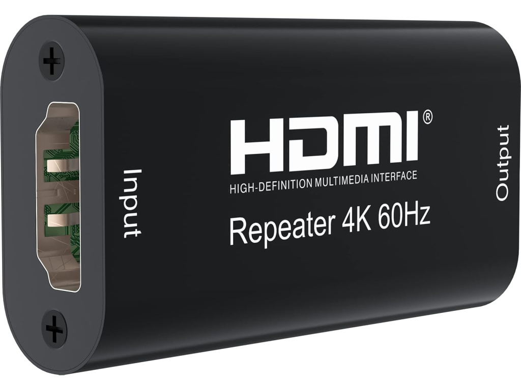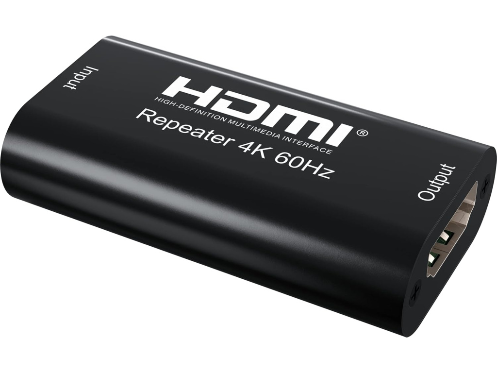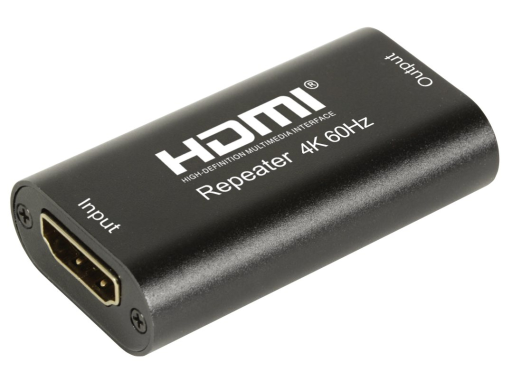 Repeater se připojuje mezi dva HDMI kabely a slouží ke stabilizaci signálu na delších trasách. Nejčastěji se používá při délkách kabelu nad 15–20 metrů, kdy začíná docházet k útlumu signálu a zhoršení kvality obrazu.