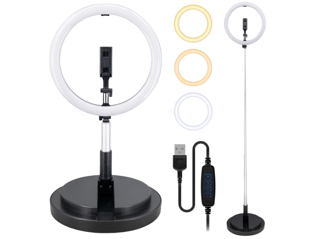 12" okrągłe światło ring light LED ze statywem przeznaczone do robienia zdjęć, nagrywania filmów i makijażu (czarne)
