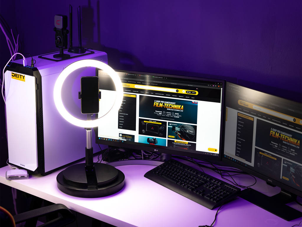 Kompaktowa lampa LED w kształcie pierścienia 8" typu "ring light" z możliwością regulacji temperatury barwowej w zakresie 3200K - 5500K bez filtrów.