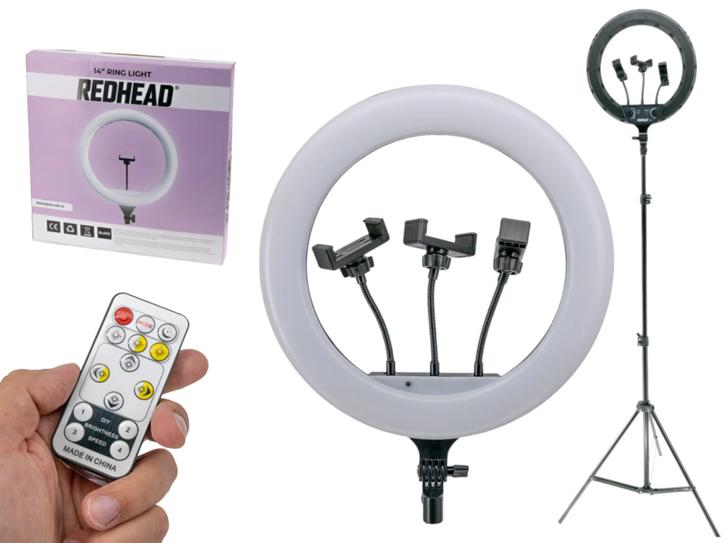 Wydajna lampa LED w kształcie pierścienia 14" typu "ring light" REDHEAD FT-30S z możliwością regulacji temperatury barwowej w zakresie 3000K - 6500K bez filtrów oraz z pilotem...