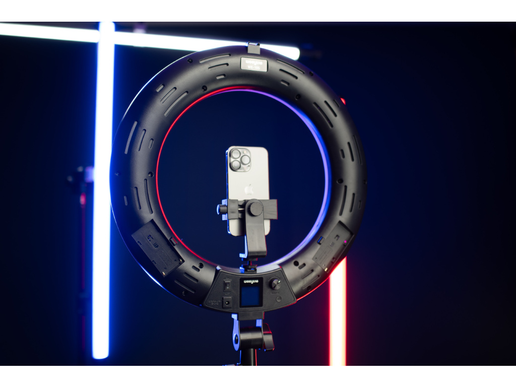 18" Ring Light z białym i trybem RGB - Weeylite WE-10S + Statyw, torba i spust Bluetooth w prezencie Tryb biały, żółty i kolorowy | Wysoka efektywność świetlna