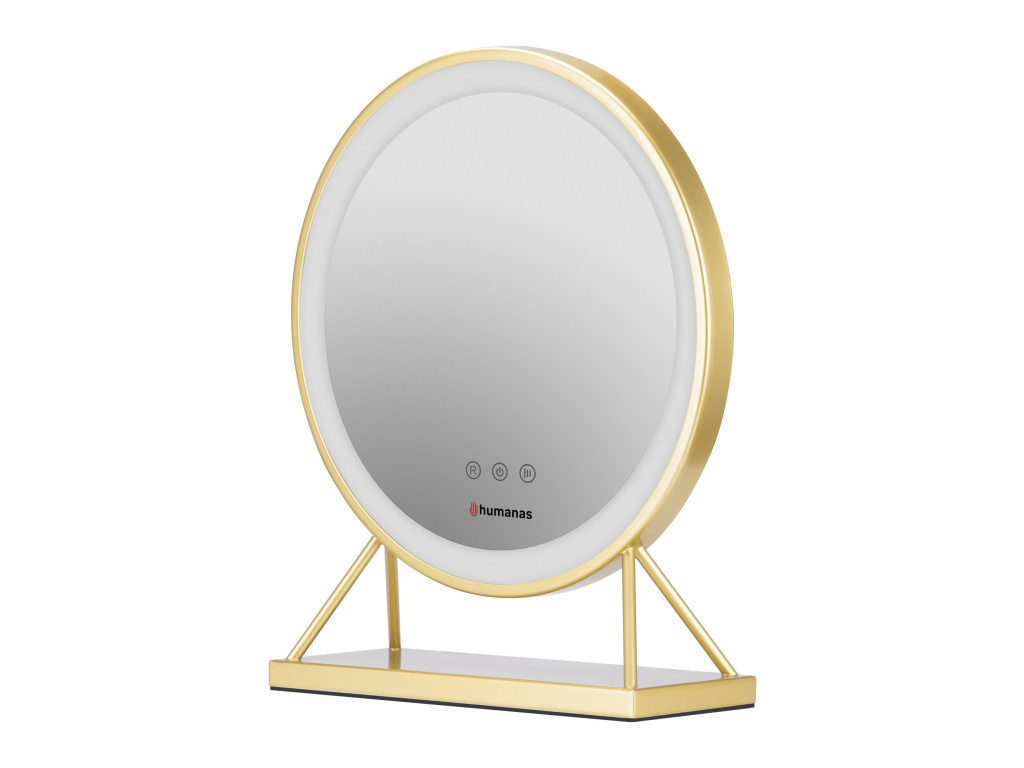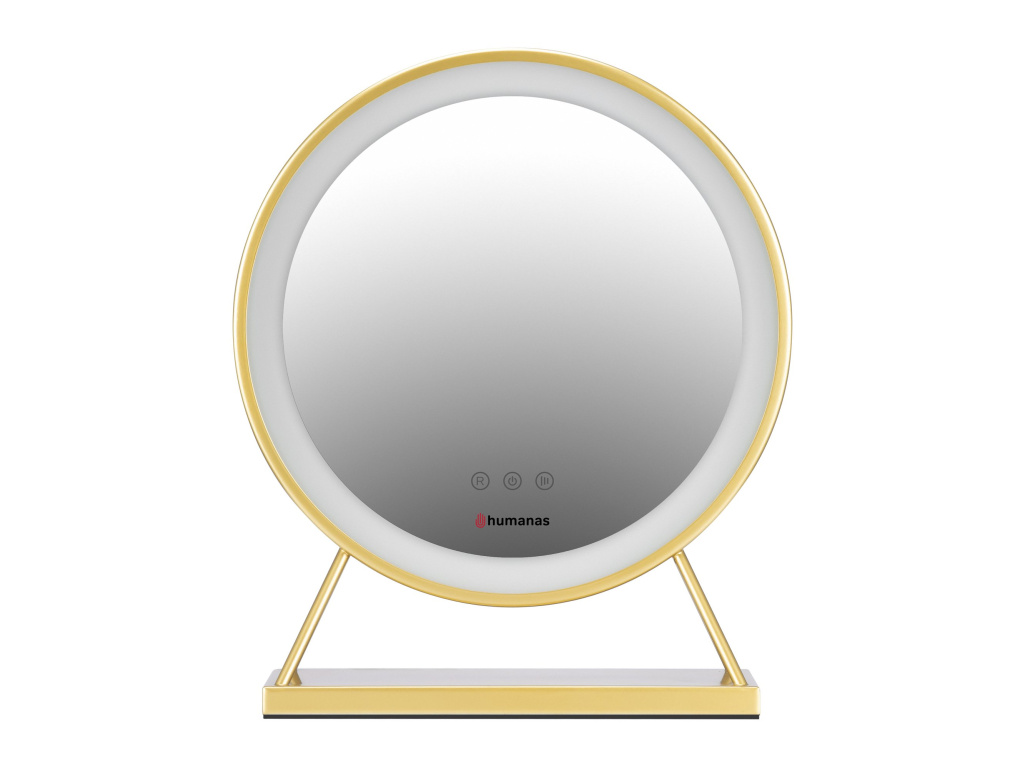 Lustro Humanas HS-HM04 z oświetleniem LED to nie tylko świetna pomoc w pracy z makijażem, ale także piękna dekoracja, która znajdzie swoje miejsce w każdym wnętrzu. Wyposażone jest w panel dotykowy, który umożliwia szybką i wygodną regulację mocy. Aby światło było idealnie dopasowane do otoczenia, pory dnia lub Twoich nietypowych pomysłów na makijaż, zadbano również o 3 poziomy temperatury barw – ciepłą, zimną i neutralną. Złote metalowe wykończenie idealnie nadaje się do domowych i kosmetycznych studiów, a panel LED z mlecznego tworzywa sztucznego zapewni miękkie światło dla optymalnego oświetlenia Twojej twarzy.