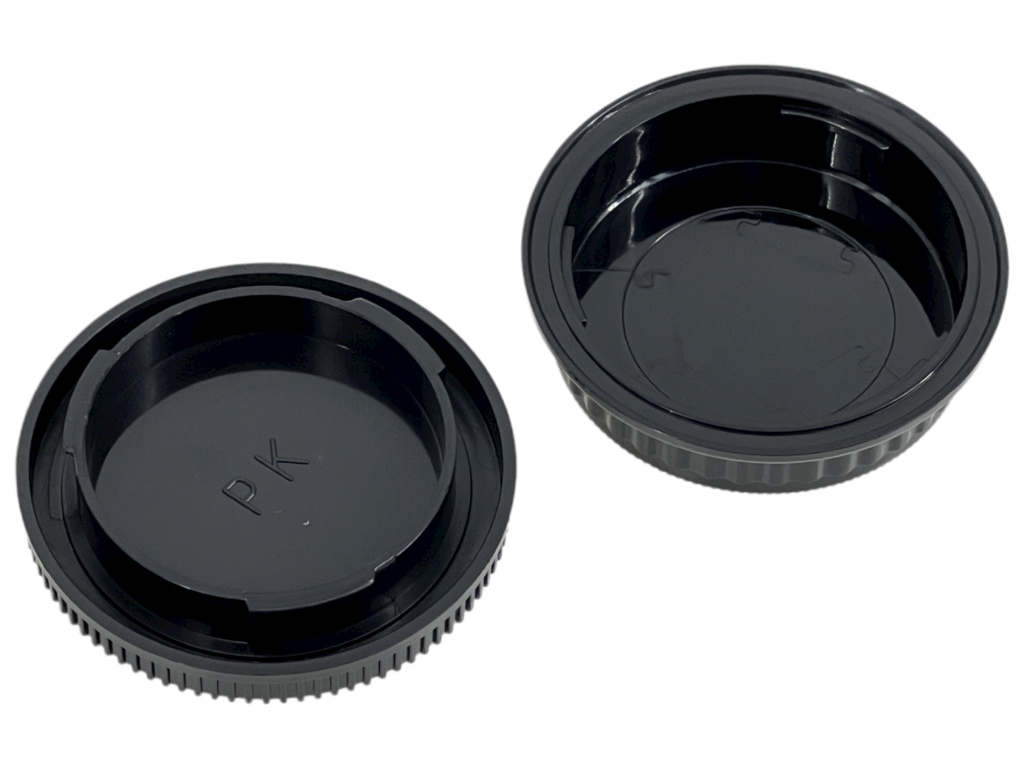 Ochronna osłona korpusu i tylna osłona obiektywów marki Pentax K-mount. Zapasowa plastikowa osłona obiektywów. W zestawie znajduje się zawsze 1 sztuka przedniej i 1 sztuka tylnej osłony.