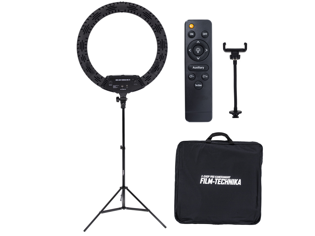 Największy wariant ring lightu na naszej stronie! 22" z 512 diodami LED raczej długo nic nie przebije. Zawiera solidny statyw o wysokości 2,6 metra i nośności do 10 kg, pilot zdalnego sterowania, wysoką moc (78W) oraz możliwość regulacji temperatury światła za pomocą pokrętła. Uchwyt na telefon komórkowy jest również częścią zestawu. Więcej informacji w poniższym filmie. Światło jest tak mocne i miękkie, że zastąpi softbox.