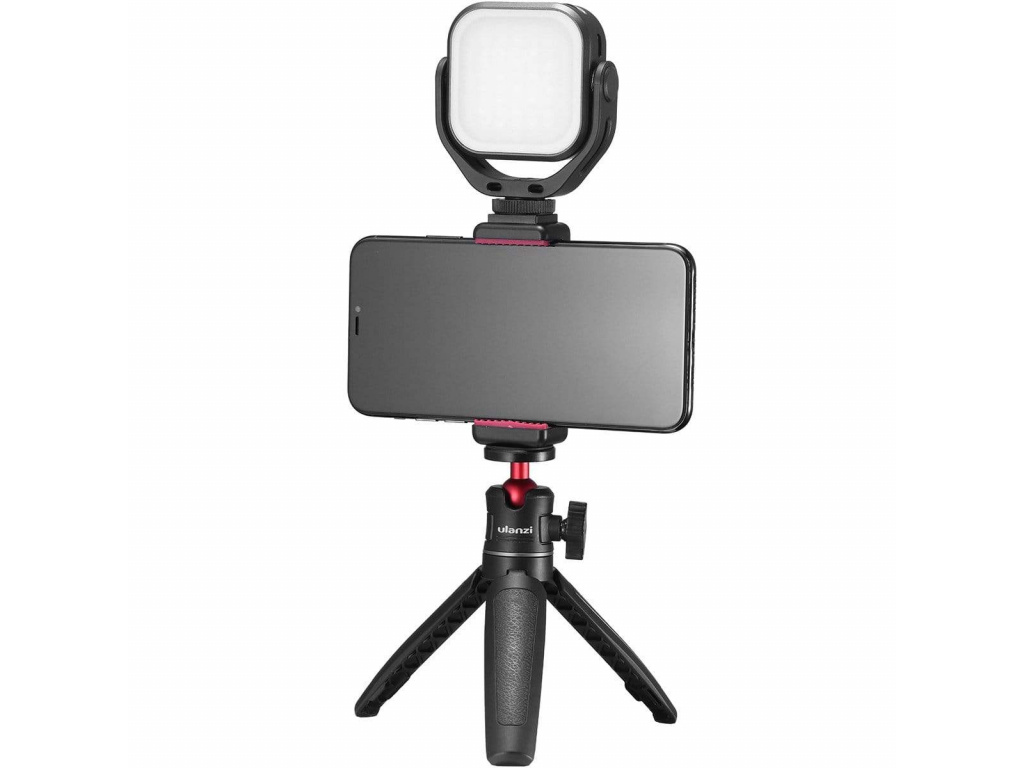 Zestaw vlogerski do telefonów komórkowych z uchwytem na telefon i sankami "cold shoe". Idealny do mocowania dodatkowych akcesoriów, takich jak światło lub mikrofon.