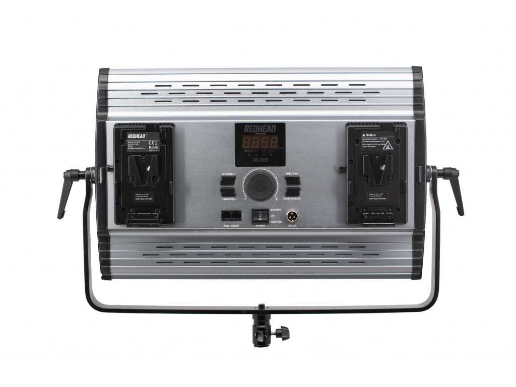 Ogromny panel LED dla najbardziej wymagających. Jasność bezkompromisowych 15 000 lumenów. Profesjonalny panel filmowy LED Redhead RX-150S pokryty jest 1700 diodami SMG LED. Zawiera port DMX i możliwość zasilania światła bezpośrednio z akumulatorów V-mount.