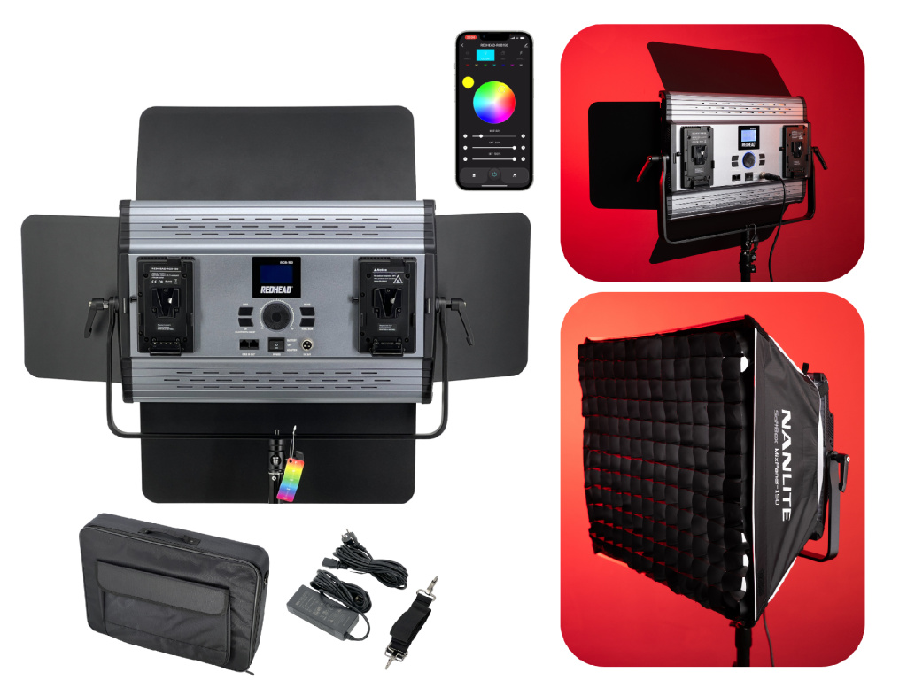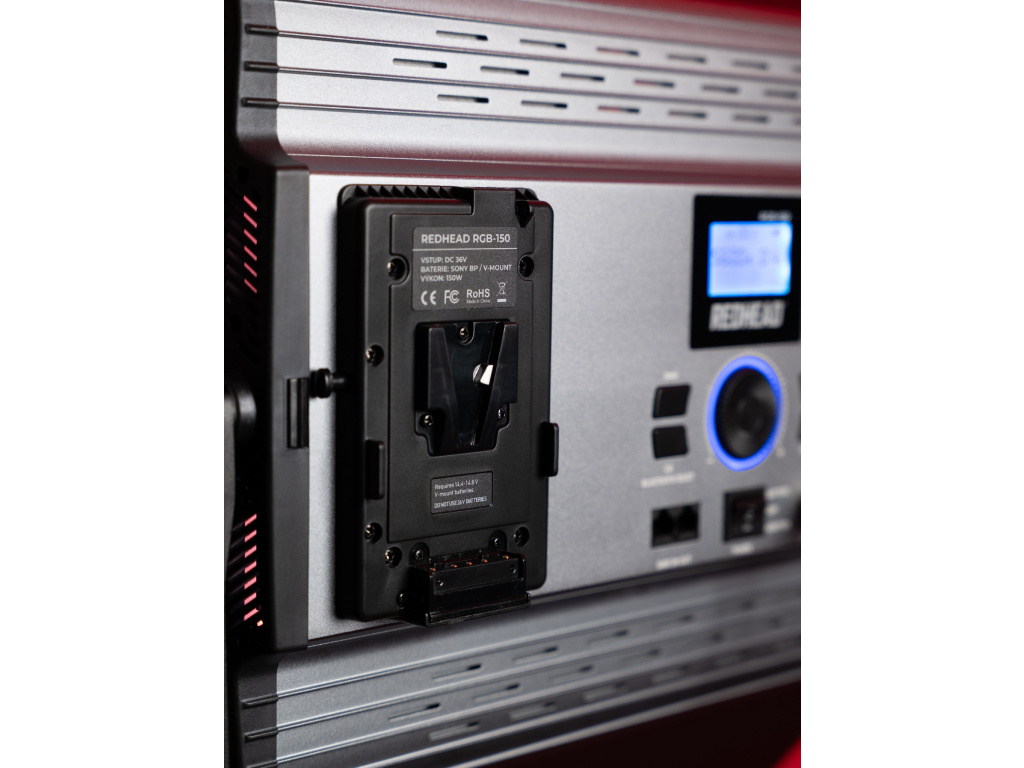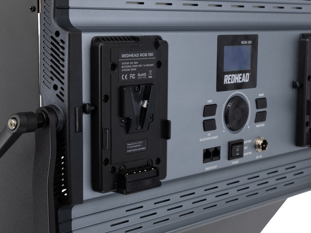 Redhead RGB-150 jest następcą bardzo popularnej serii profesjonalnych filmowych paneli LED serii RX-150S. W wersji RGB panelu można oczekiwać ekstremalnego zakresu temperatury barwowej (2700-10000K), trybu RGB HSL, efektów specjalnych (łącznie 20) lub nawet wygodnego sterowania za pomocą aplikacji na smartfona (link do aplikacji znajduje się w zestawie). Lampa jest w pełni metalowa i pobiera 150W z dołączonego solidnego zasilacza AC (36V), ale można ją również zasilać za pomocą 2 x baterii V-mount.