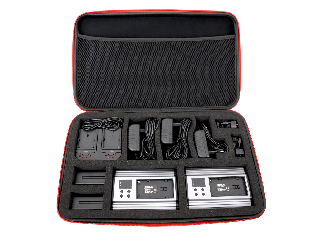 Zestaw dwóch lamp foto wideo LED Redhead EZ-150 ze statywami Balení obsahuje stativy i baterie