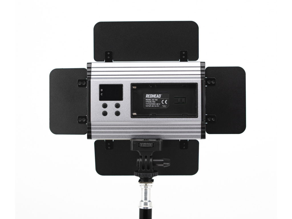 Redhead EZ-150 to małe, kompaktowe światło, które dorosły człowiek może chwycić w jedną dłoń. Rozmiarem przypomina mniejszy tablet. Zaletą tego światła jest z pewnością torba z kompletnym wyposażeniem. W niej znajdziesz dwa światła, które mają jasność do 1500 lumenów (każde) i możliwość regulacji temperatury światła od 3200 do 5600K. Ciekawostką są drzwiczki, które są już na stałe przymocowane do światła. Można je ustawiać i regulować, aby uzyskać idealny strumień światła bez niepożądanych cieni. Pomocny będzie również wyświetlacz LCD, na którym można kontrolować ustawienia. W zestawie znajdują się również przeguby, dzięki którym można zamontować lampę na statywie (w ramach promocji w zestawie 2 szt.), lub na sankach kamery / aparatu. Ten przegub można różnie wyginać, więc oświetlenie z góry lub z dołu nie stanowi problemu. W zestawie znajduje się również bateria i podwójna ładowarka. |