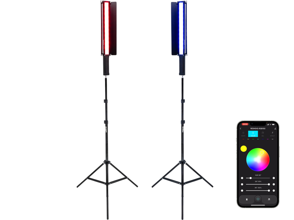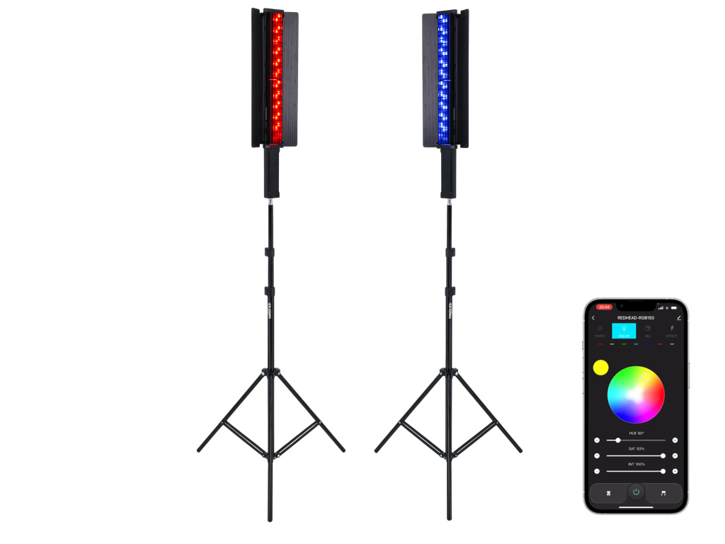 Zestaw dwóch Redhead RGB Stick 24W kolorowych lamp LED do foto i wideo + statywy 2m