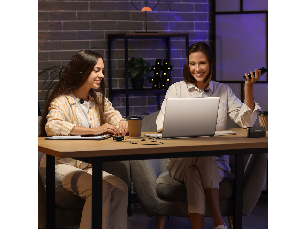 Zestaw dwóch mini bezprzewodowych mikrofonów dla użytkowników smartfonów, mikrofony bezprzewodowe do nagrywania rozmów, podcastów od wiodącego producenta mikrofonów mobilnych...