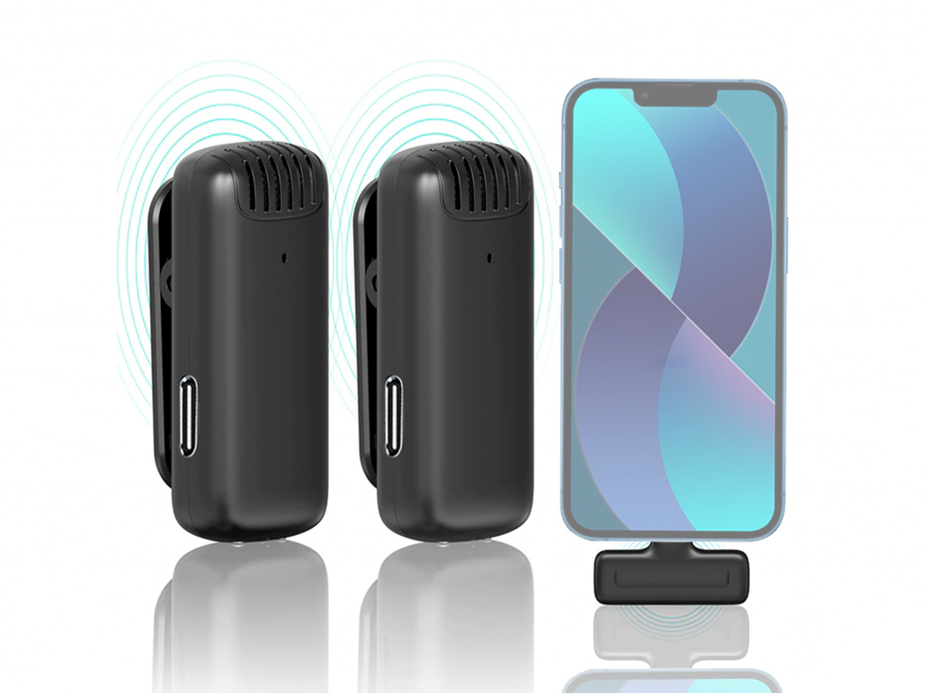 Klipsy z tyłu każdego nadajnika umożliwiają przymocowanie do kołnierza koszuli, a odbiornik wkłada się bezpośrednio do złącza Lightning kompatybilnego smartfona lub tabletu, gdzie jest jednocześnie zasilany.
