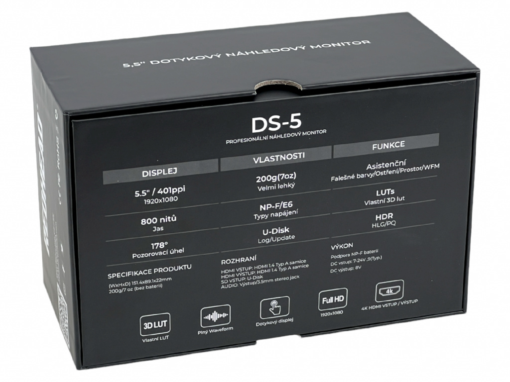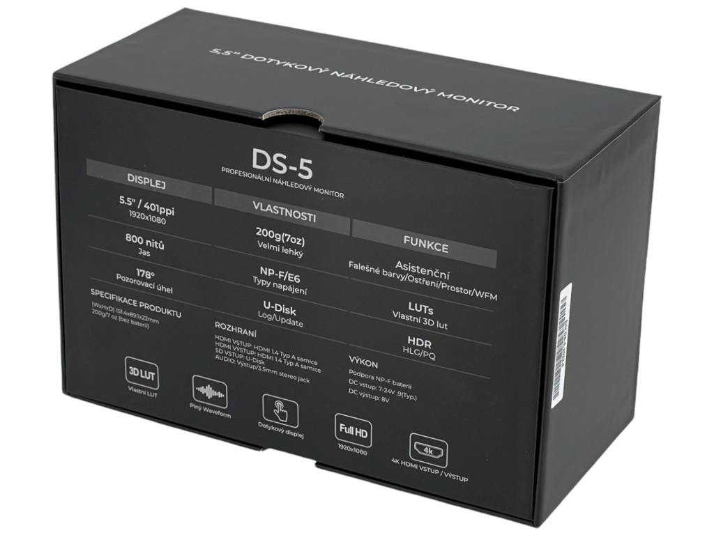 Redhead DS-5 5,5" dotykowy monitor podglądowy 800 nitów, czeski interfejs, obsługa 3D Lut