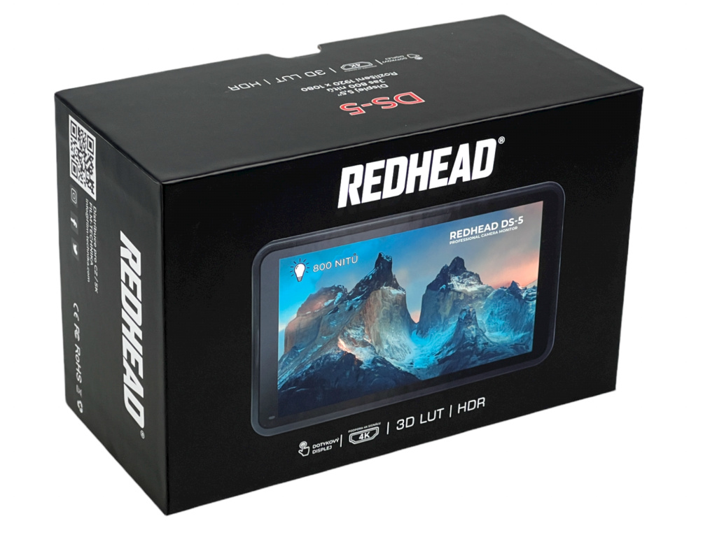 Profesjonalny monitor podglądowy Redhead DS-5 to 5,5-calowy monitor Full HD z obsługą sygnału 4K. Monitor posiada wejście i wyjście HDMI. Jasność wynosi aż 800 nitów, co zapewnia bezproblemowe nagrywanie nawet w słoneczne dni. Monitor posiada wejście USB do wgrywania 3D Lut za pomocą dołączonej pamięci flash.