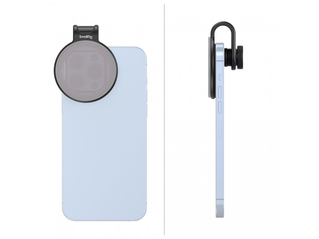 SmallRig 52mm Cell Filter Clip 3845 zapewnia profesjonalne i bezpieczne rozwiązanie do fotografowania z zewnętrznymi filtrami. Utrzymuje dostęp do obiektywów serii iPhone 12 / 13 i nie ma wpływu na sposób, w jaki działają wszystkie funkcje. Klip mocuje się za pomocą pokrętła zaciskowego, które jest mocne i niezawodne, i w pełni chroni telefon za pomocą dwustronnych poduszek przed zarysowaniem. Jego pierścień filtrujący magnetycznie zabezpiecza filtr magnetyczny 52 mm, co ułatwia instalację i demontaż. Odległość otwarcia wynosi do 13 mm, dlatego nie trzeba wyjmować etui telefonu.