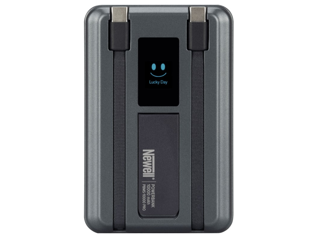 Newell MS-10000 Pro MagSafe to wielofunkcyjny powerbank, który mieści się w kieszeni. Jego pojemność 10 000 mAh zapewnia do trzech pełnych naładowań smartfona. Szybkie ładowanie Power Delivery o mocy do 22,5 W pozwala naładować urządzenie w mgnieniu oka. Dzięki technologiom MagSafe i Qi możesz bezprzewodowo ładować iPhone'a, inteligentny zegarek lub słuchawki. Dwa zintegrowane kable USB-C eliminują bałagan i masz je zawsze pod ręką. Podświetlany wyświetlacz zapewnia pełną kontrolę nad parametrami ładowania. Aluminiowa podstawka pozwala przekształcić powerbank w elegancki stojak na smartfona. Zaawansowane funkcje bezpieczeństwa zapewniają komfort i bezpieczeństwo w każdej sytuacji.