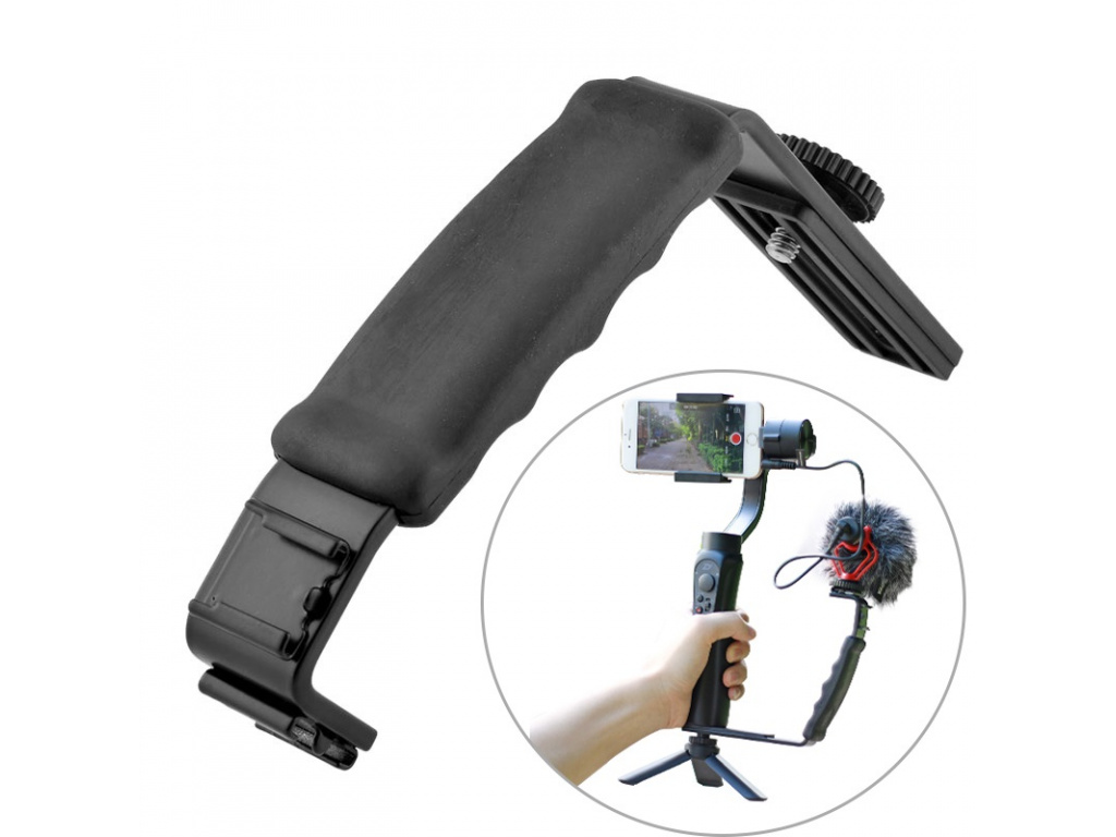 Wytrzymały uchwyt na akcesoria zewnętrzne, takie jak: mikrofon, światło LED, lampa błyskowa itp. Zawiera 2x mocowanie Cold shoe i regulowany gwint 1/4", co umożliwia przymocowanie uchwytu niemal wszędzie. Nie brakuje również wygodnego uchwytu. Świetny wybór w połączeniu z gimbalem, ale także z podpórkami naramiennymi czy klatką operatorską.