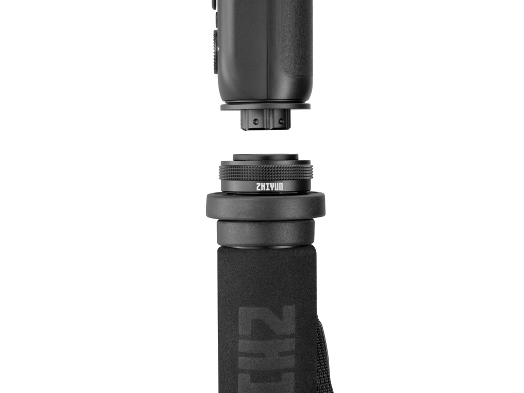 Adapter szybkiego uwalniania umożliwia szybkie i bezśrubowe zwolnienie i ustawienie statywu / monopodu na stabilizatorze. Zestaw umożliwia przełączanie między trybem pozycji pionowej a trybem zawieszenia w ciągu sekundy. Dzięki uniwersalnemu gwintowi 1/4", można go używać również z gimbalami innych marek. Może być używany na statywie/monopodzie lub monitorze do szybkiego mocowania.
