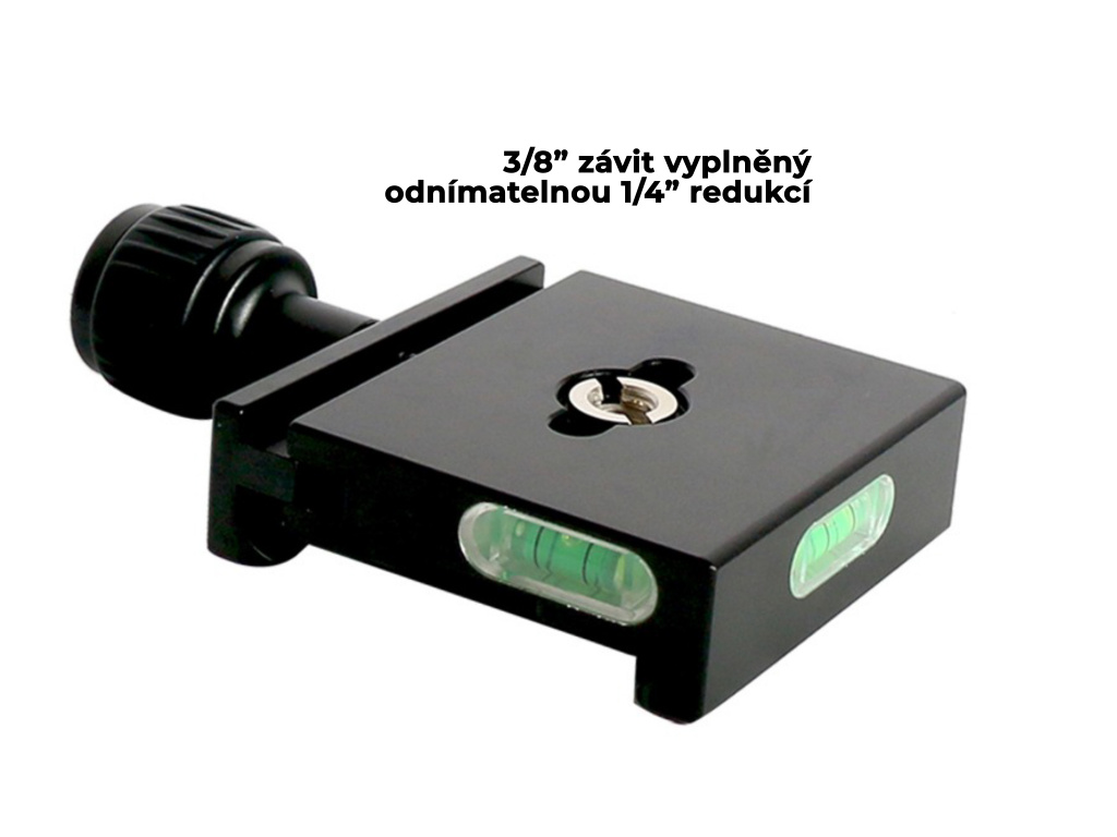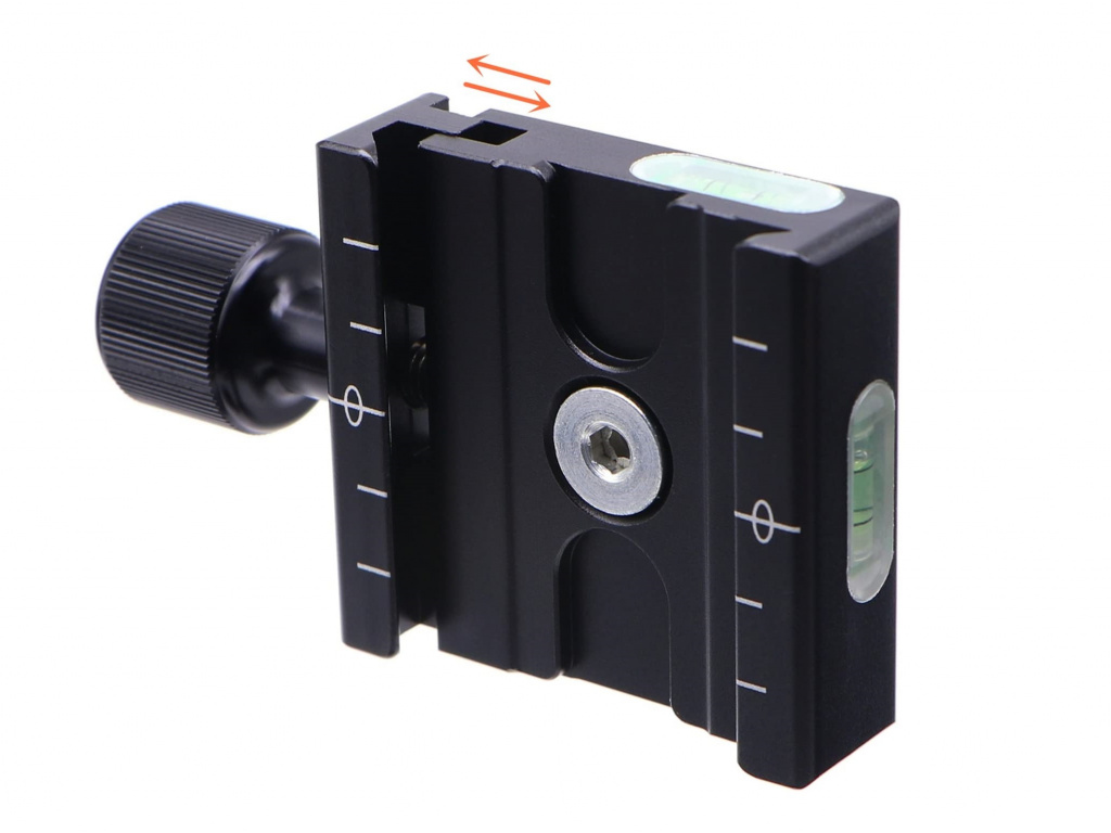 W zestawie znajdują się trzy poziomice (obie strony płytki szybkozłącznej i strona pokrętła zabezpieczającego), które pomogą dokładniej określić położenie.