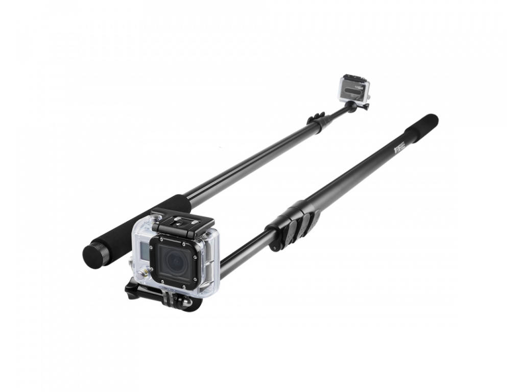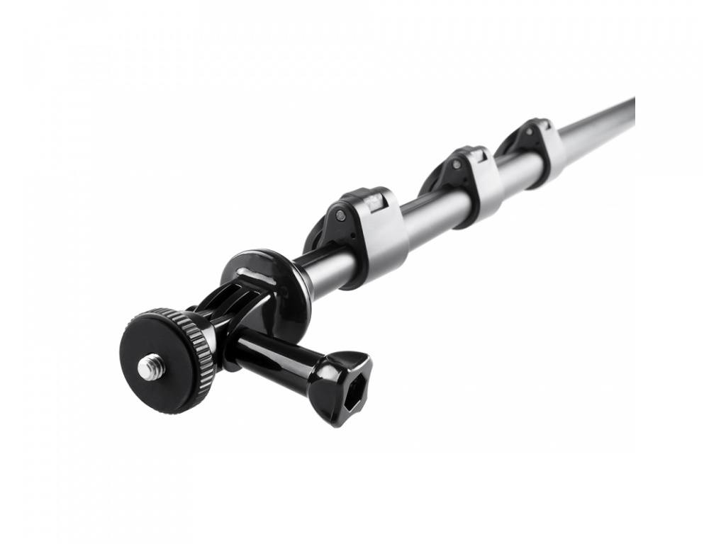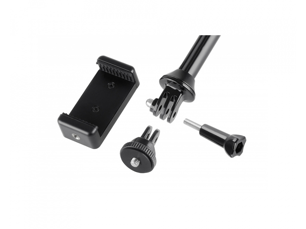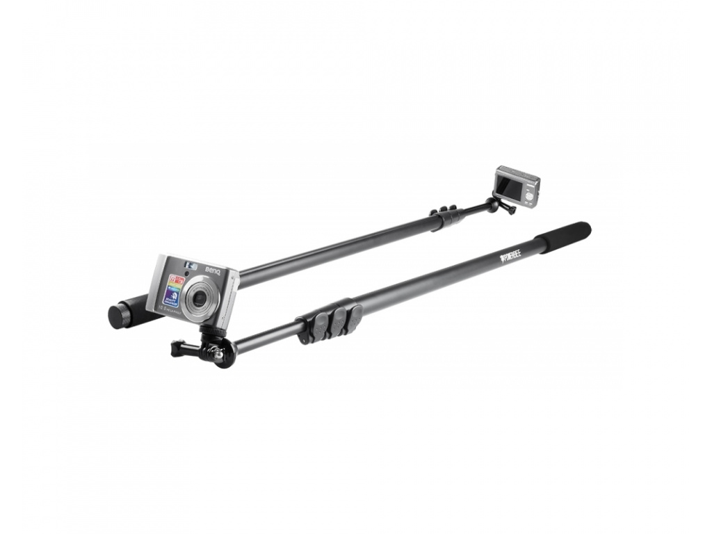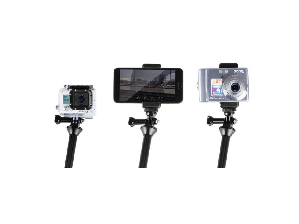 Urządzenie zawiera bezpośrednie mocowanie do wszystkich kamer GoPro. W zestawie znajduje się również adapter z gwintem 1/4", który umożliwia podłączenie wszystkich małych aparatów i kamer o maksymalnej długości 80 mm. Długość ramienia można szybko i niezawodnie zmieniać obracając uchwyty.