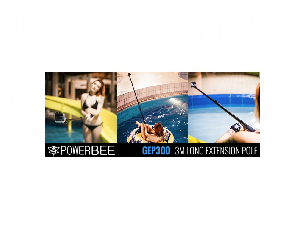 POWERBEE GEP300 to najdłuższe ramię teleskopowe do kamer GoPro dostępne na rynku. Nadaje się do robienia zdjęć z innej perspektywy (zasięg do 300 cm). Przydatny podczas nagrywania podczas uprawiania sportów, takich jak jazda na nartach, snowboarding, łyżwiarstwo i wiele innych. W wielu przypadkach pozwala na uzyskanie efektu podobnego do drona.