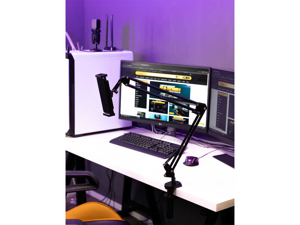 Elastyczne ramię do tabletów i smartfonów to idealne rozwiązanie dla wygodnego, bez użycia rąk korzystania z urządzeń. Dzięki mocnemu klipsowi można go łatwo przymocować do każdego stołu lub powierzchni roboczej. Ramię jest w pełni regulowane, dzięki czemu możesz ustawić idealną pozycję do oglądania filmów, rozmów wideo, czytania lub pracy. Kompatybilny z szeroką gamą urządzeń o szerokości 13-20 cm, w tym telefonów i tabletów. Stabilna i solidna konstrukcja zapewnia bezpieczne mocowanie urządzenia, a elastyczna konstrukcja umożliwia łatwą regulację bez wysiłku.