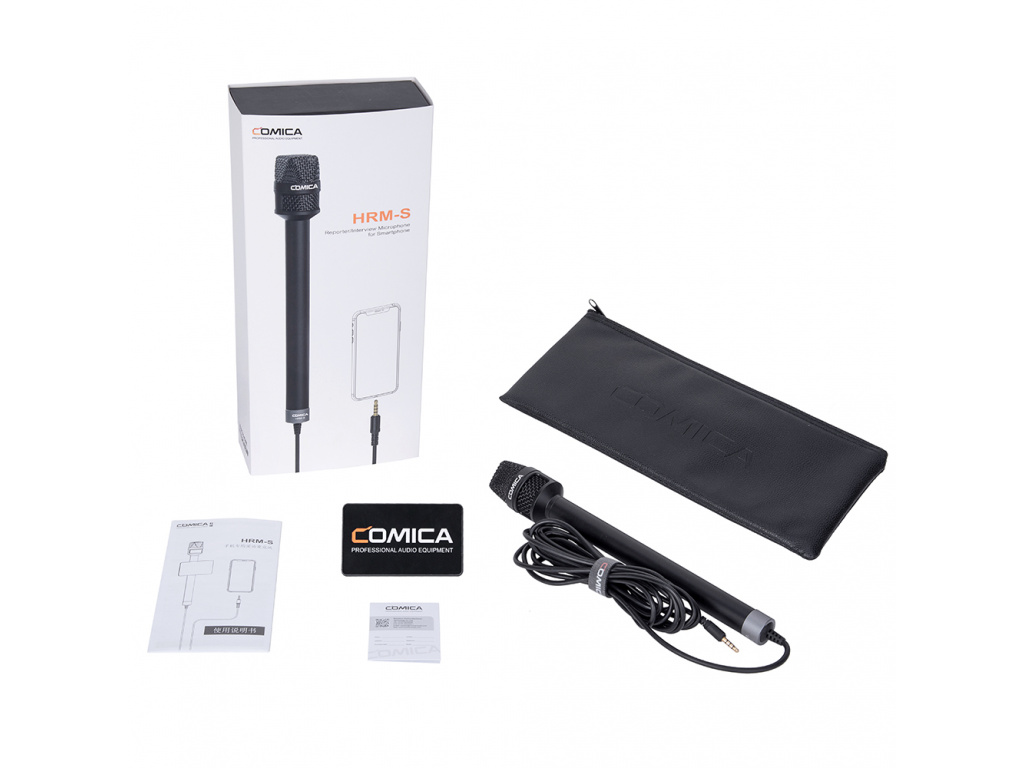 HRM-S to aluminiowy, ręczny mikrofon reporterski przeznaczony do telefonów komórkowych i urządzeń z wejściem TRRS. Nie potrzebujesz żadnej dodatkowej redukcji do użycia z telefonem wyposażonym w złącze 3,5 mm (wejście słuchawkowe). W przypadku urządzeń ze złączem USB-C i Apple Lightning potrzebna jest redukcja.