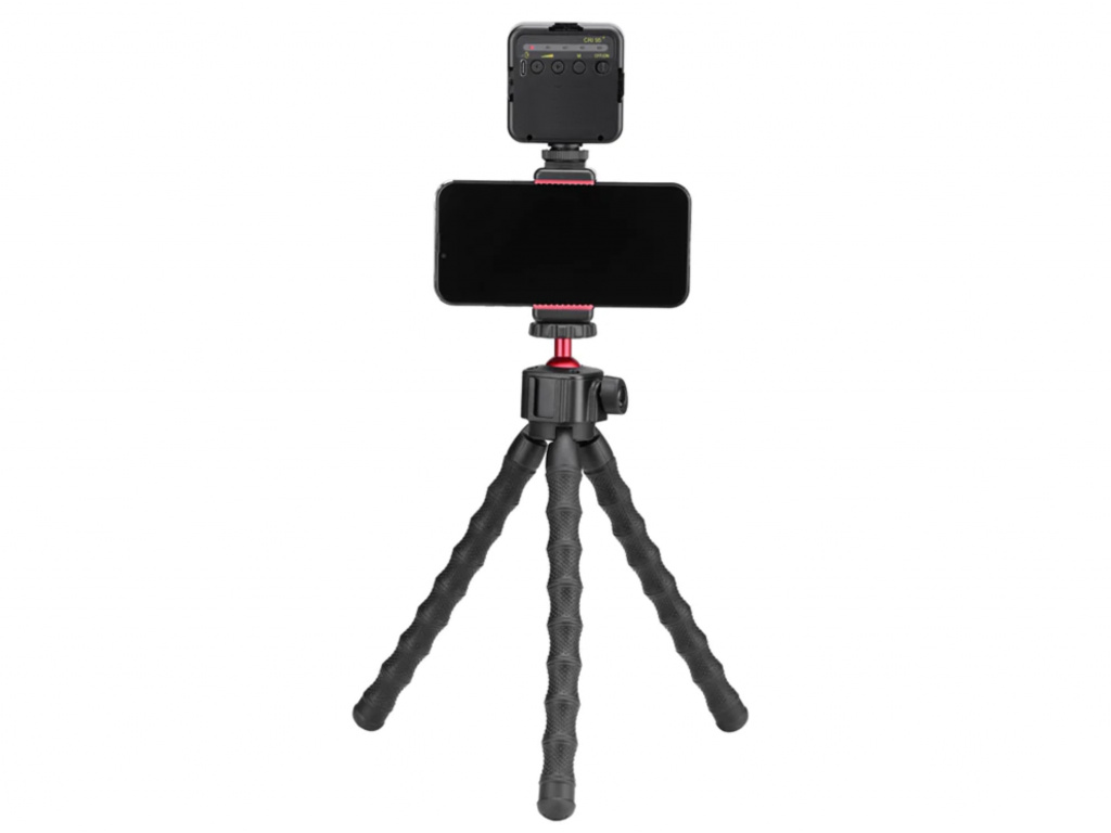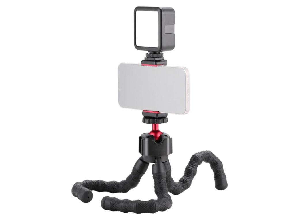 Zestaw do nagrywania filmów na telefon komórkowy 3w1 zawiera solidny statyw typu octopus o nośności do 1 kg. Bardzo dobrze wykorzystasz go do innych kamer, ponieważ zawiera śrubę 1/4" na górze i regulowaną głowicę obrotową 360°. Do użytku z telefonem komórkowym w zestawie znajduje się uchwyt na telefon, do którego wkłada się telefon o szerokości do 95 mm.