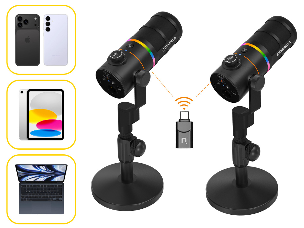 COMBO 2x Comica EJoy D10 PRO RGB kardioidalny mikrofon dynamiczny bezprzewodowy (czarny)