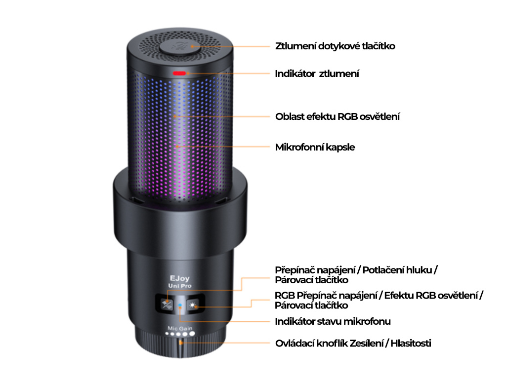 Comica Audio EJoy Uni Pro USB bezprzewodowy mikrofon pojemnościowy z kontrolą RGB Wariant biały