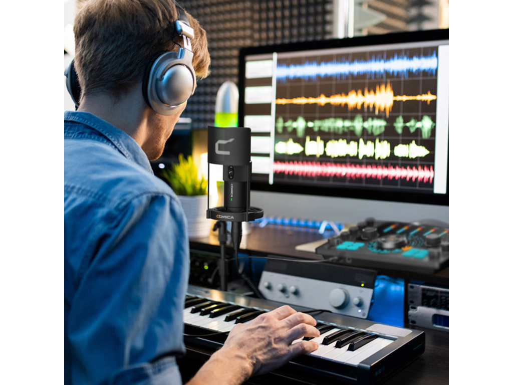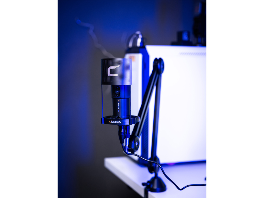 Comica EJoy Uni USB przewodowy mikrofon pojemnościowy z kontrolą RGB, 48 kHz 24 bity, uniwersalny mikrofon stołowy do streamowania, nagrywania lub podcastingu.
