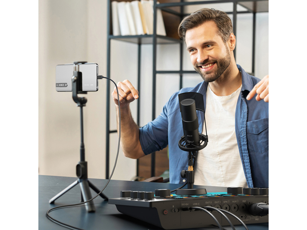 Mikser Comica Audio XLR/6,5mm/3,5mm do lustrzanek cyfrowych umożliwia podłączenie, regulację i monitoring mikrofonów XLR / 6,35mm / 3,5mm do kamery.