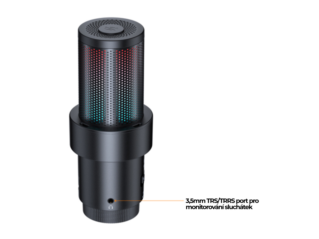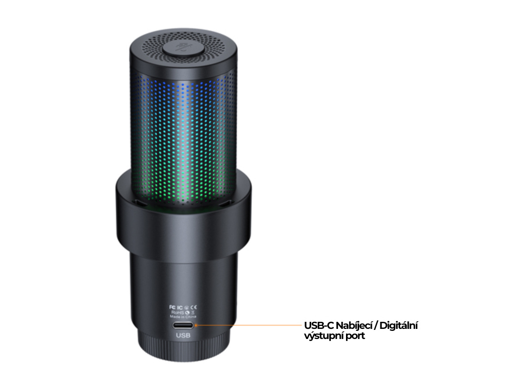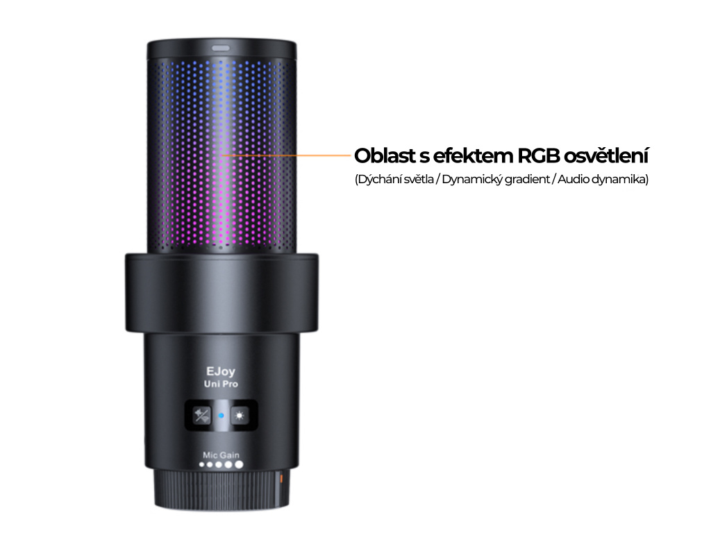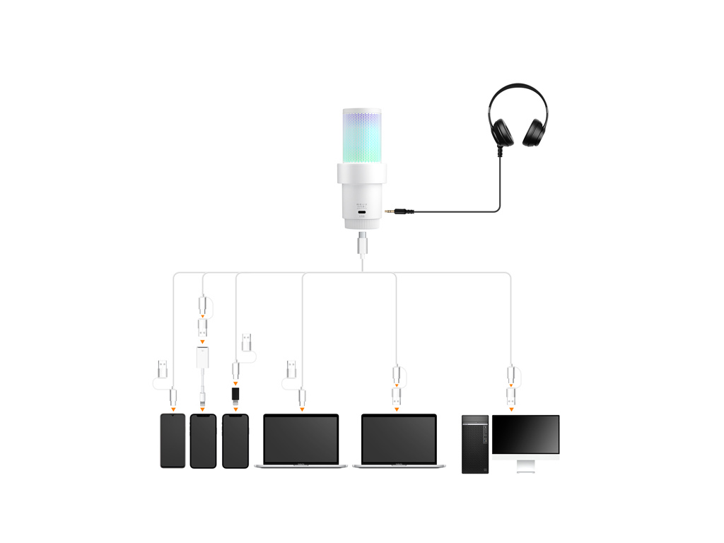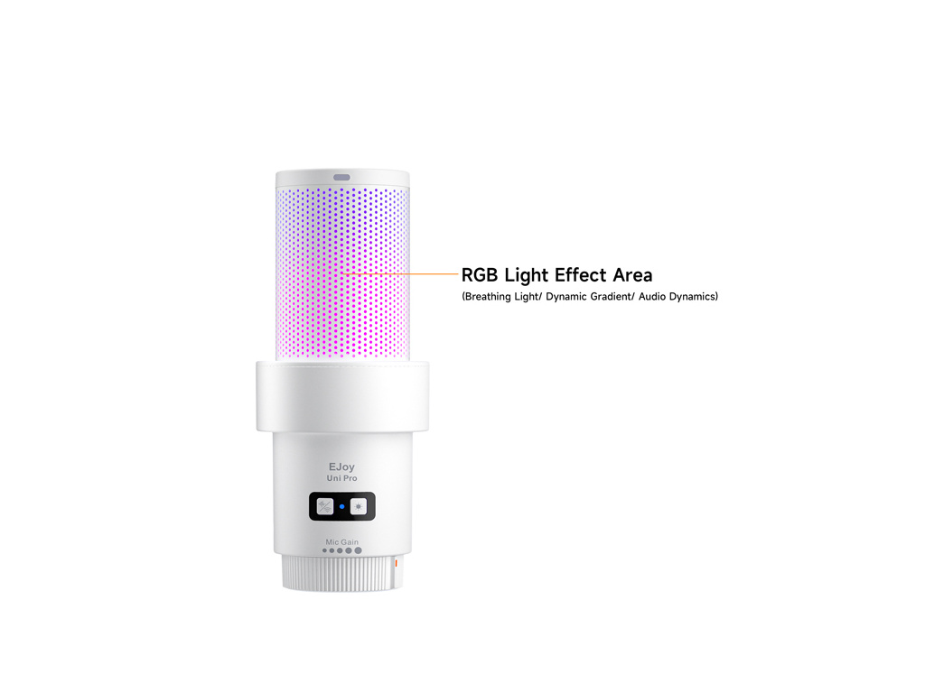 Głośność mikrofonu można regulować w zależności od potrzeb; obsługa monitorowania w czasie rzeczywistym i przechwytywania efektu nagrywania; jeden przycisk do usuwania szumów oddala zakłócenia i zapewnia czystszy i swobodniejszy zapis dźwięku; dotykowy przycisk do szybkiej reakcji na wypadki i unikania niepotrzebnego dźwięku - Dynamiczne, jaskrawe światło RGB z 3 unikalnymi efektami RGB