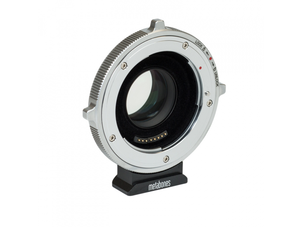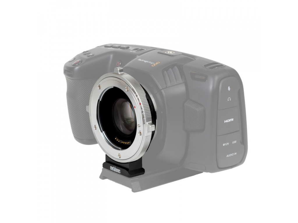 Adapter BMPCC4K Speed Booster zmniejsza crop factor kamery BMPCC 4K z 2,02x do 1,43x i zwiększa maksymalną przysłonę aż do f/0,9.