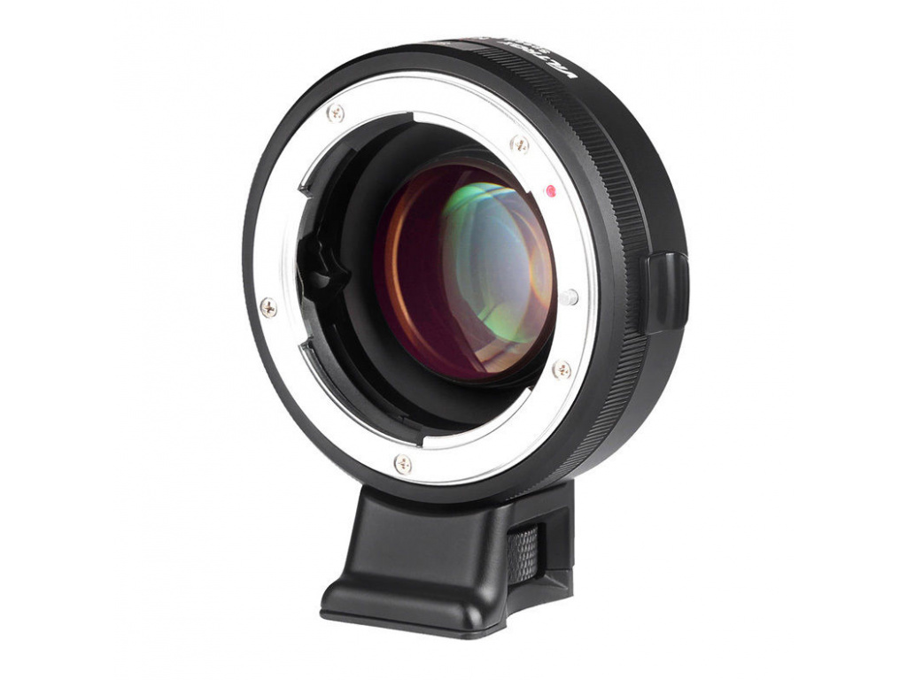 Speedbooster to adapter, który "wkładasz" między obiektyw a korpus aparatu. Zmniejsza liczbę przysłony o jeden stopień i rozszerza ognisko o 0,71x. Jeśli weźmiesz na przykład obiektyw pełnoklatkowy 50 mm i zamontujesz go na chipie m4/3 Lumix GH5 (który ma współczynnik crop 2.0x), to nie powstanie oryginalne 50 mm, ale 71 mm, co jest znacznie lepszą ogniskową niż 100 mm, które standardowo powstałoby z wspomnianej "pięćdziesiątki" przy współczynniku crop 2.0x.