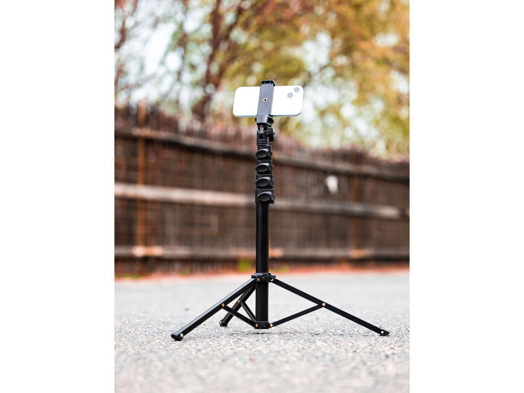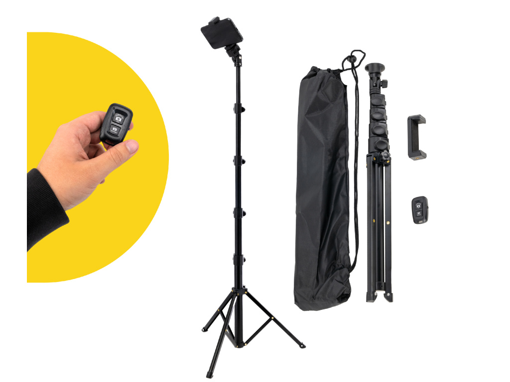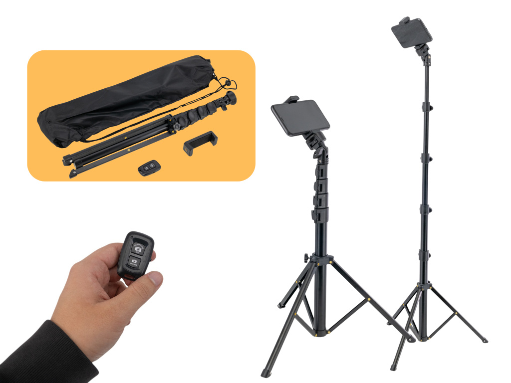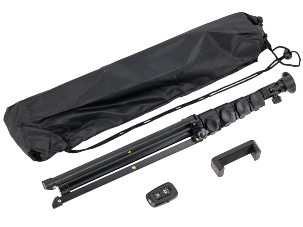Aluminiowy statyw z uchwytem na smartfony i pilotem Bluetooth