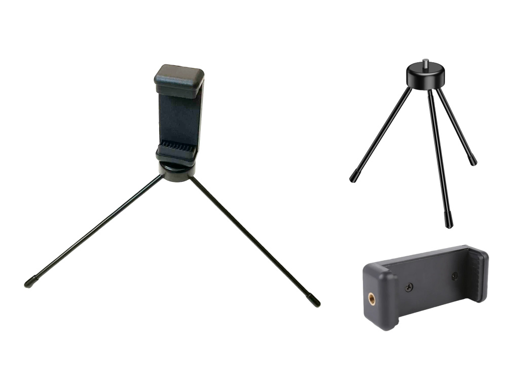 Kompaktowy uchwyt na smartfona z mini statywem, odpowiedni do telefonów od 59 mm do 90 mm.