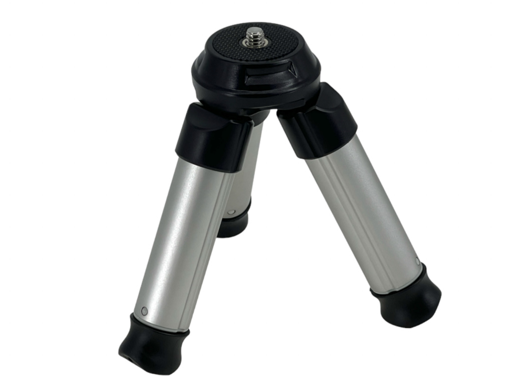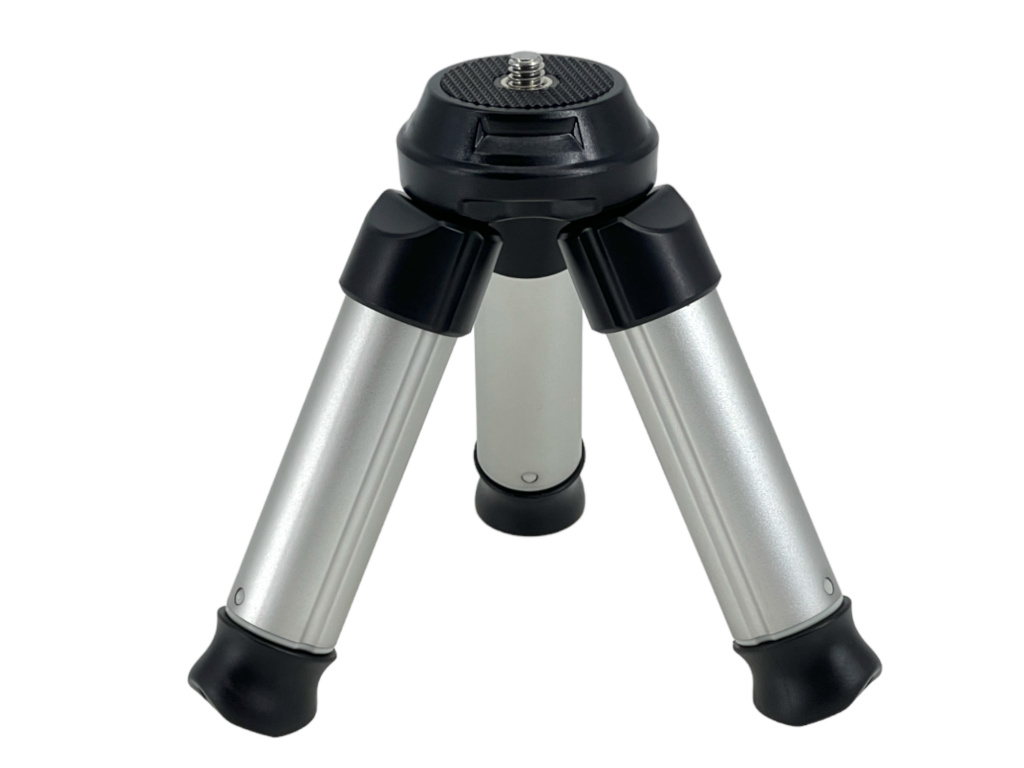 Mini statyw KingJoy ma po złożeniu zaledwie 11 cm długości, a po rozłożeniu jego maksymalna wysokość wynosi aż 31 cm. Na górze znajduje się standardowa śruba 1/4", dzięki czemu bardzo łatwo można dokupić jakiś uchwyt do smartfona, jakąś klatkę lub głowicę kulową i zamontować smartfon lub aparat.