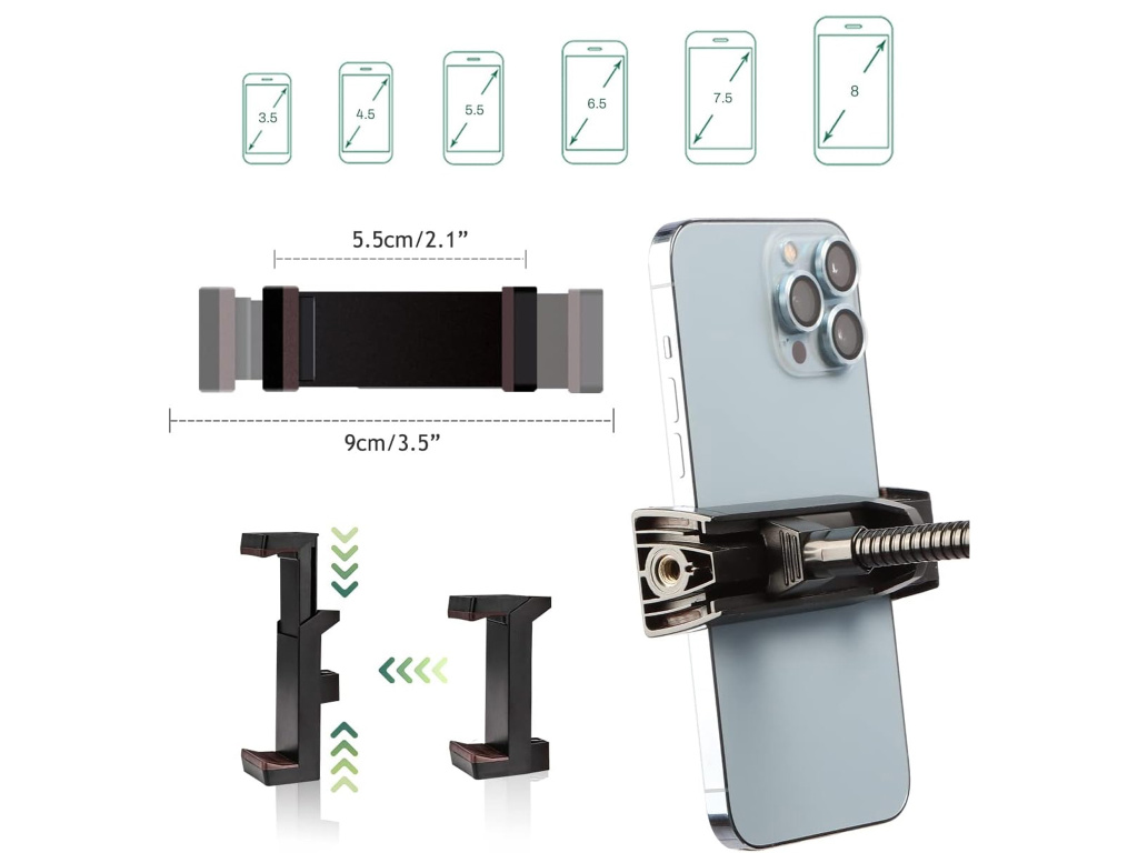 Ten wytrzymały i lekki statyw o maksymalnej wysokości 2,1 m (82,7 cala) jest idealny do vlogowania, transmisji na żywo, rozmów wideo lub robienia zdjęć. Dzięki elastycznej gęsiej szyi o długości 50 cm z łatwością ustawisz żądany kąt. Uniwersalny uchwyt jest kompatybilny ze smartfonami o szerokości 5,5–9 cm, a jego silikonowe podkładki chronią urządzenie przed zarysowaniem. Statyw jest wyposażony w gwint 1/4", który umożliwia przymocowanie szerokiej gamy urządzeń, takich jak aparaty fotograficzne, kamery czy światła.