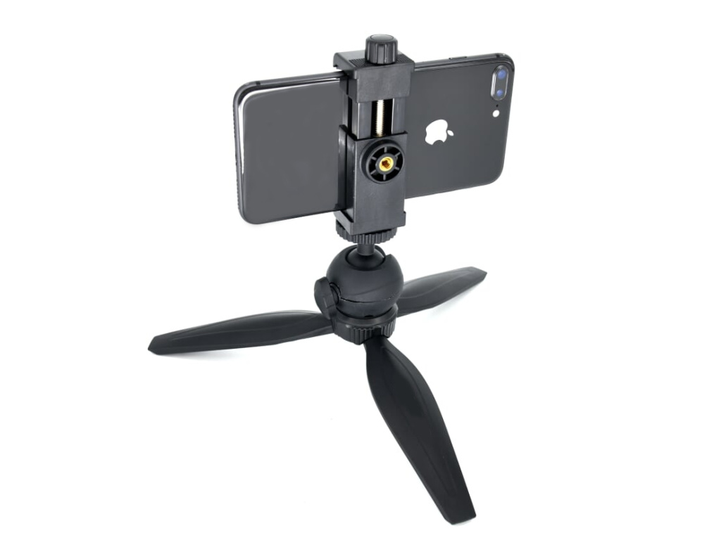 Wielofunkcyjny mini statyw przeznaczony do lustrzanek cyfrowych o wadze do 2 kg i smartfonów. Statyw zawiera głowicę kulową, którą można obracać w zakresie 360°. Maksymalna wysokość wynosi 13 cm, konstrukcja jest bardzo lekka i łatwa do przenoszenia, bez problemu mieści się w plecaku lub torebce. Gumowane nóżki zapobiegają ślizganiu się, a regulacja nóżek pozwala dostosować się do każdej sytuacji.