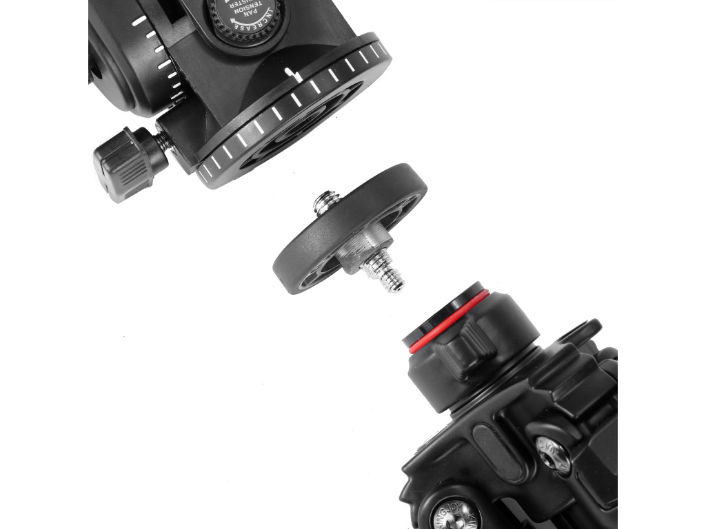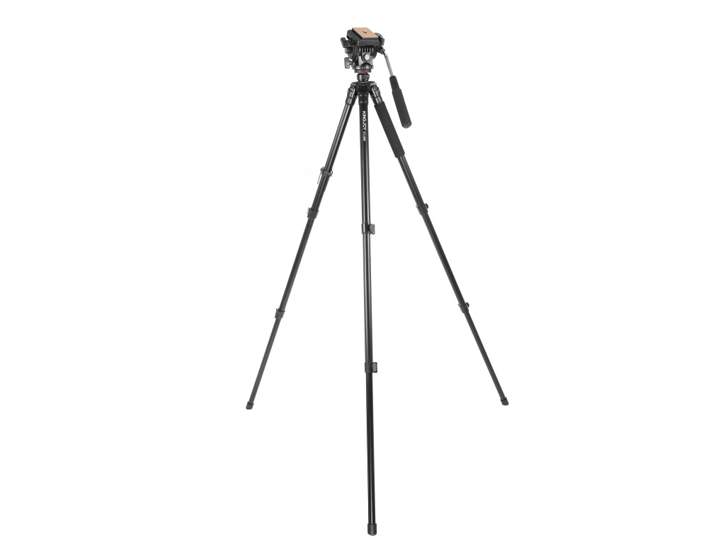Kompaktowy statyw Kingjoy VT-1200 z głowicą olejową VT1510. Idealne rozwiązanie dla tych, którzy nie potrzebują wysokiej nośności, ale chcą płynnego ruchu panoramicznego do celów wideo. Kto śledzi naszą stronę, mógł zauważyć, że głowicę VT-1510 już kilkakrotnie bardzo pochwaliliśmy. Jest plastikowa, ma nośność "tylko" 4 kg, ale ma naprawdę ładny, płynny ruch panoramiczny. Jeśli masz aparat, mniejszą kamerę i ograniczony budżet, każdy statyw, który zawiera głowicę 1510, będzie dla Ciebie właściwym wyborem.