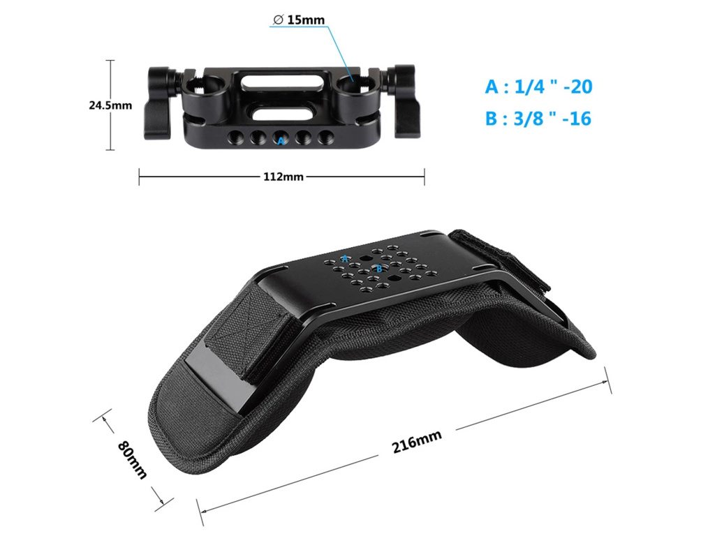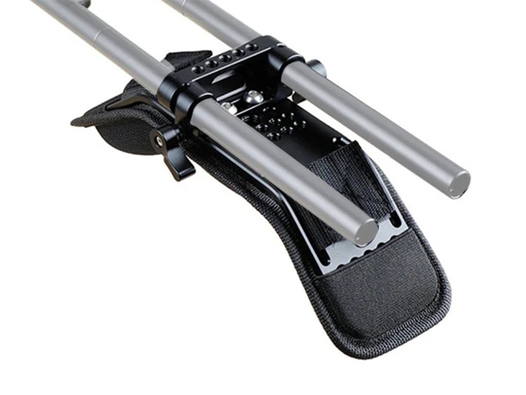 Wysokiej jakości podpórka naramienna do rigów kamerowych. Precyzyjne wykonanie. Kompatybilna z 15mm prętami rigowymi.
